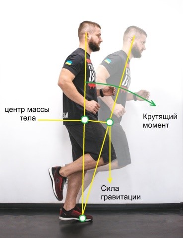 Сила тяжести, действующая на массу спортсмена, теперь испытывается суставами и мышцами.